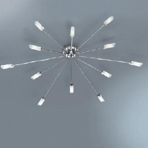 Dimensioni diametro: 106cm altezza: 20cmDescrizione ProdottoPlafoniera in metallo cromato con vetri satinati.Tipo G9 max 25 W Lampadina inclusa