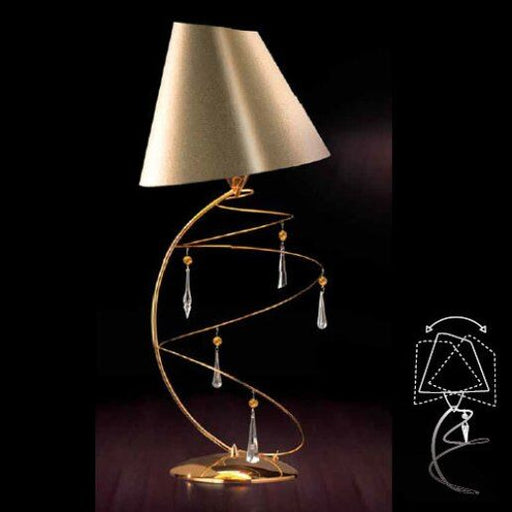 Dimensioni Diametro: 21 cm, Altezza: 52 cm.Descrizione ProdottoLampada da tavolo, vetro paralume:lamé oro est., cromo int., finitura cromo o oro 24...