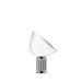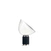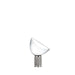 Apparecchio di illuminazione da tavolo a luce indiretta e riflessa. Riflettore in alluminio verniciato bianco lucido esternamente e bianco opaco internamente. Diffusore orientabile in vetro trasparente soffiato. Corpo in alluminio estruso verniciato nero opaco, o anodizzato naturale. Base in ABS+PC nickelata. Cavo elettrico lunghezza utile 190 cm, con interruttore dimmer che garantisce le funzioni ON/OFF e regolazione del flusso luminoso 10-100%. Power supply su spina con plug intercambiabili.