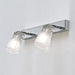 Faretto da parete o soffitto a due luci con diffusore in vetro trasparente satinato internamente. Struttura realizzata in metallo cromato.Country of Manufacturer