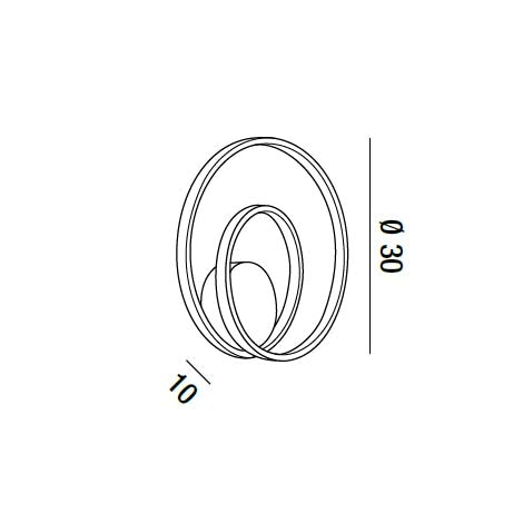 Elegante applique dal design moderno, composta da un intreccio di cerchi luminosi, con struttura in alluminio verniciato a polvere bianco opaco, nero o marrone cannella e diffusore in silicone. Ideale per soggiorno e camera da letto. La serie si completa con sospensioni, plafoniere ed piantane.