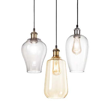 Il lampadario in foto è composto da Rosone + 5 cavo + 5 supporto + 3 Portalampada in metallo finitura ottone brunito + 2 Portalampada in metallo finitura cromo lucido + 2 paralumi in vetro Trasparente + 2 paralumi in vetro Ambra specchiato + 1 paralumi in vetro Fumè specchiato.