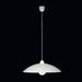 Sospensione, lampada a soffitto e da parete in vetro curvato bianco satinato, con serigrafie che creano un gioco di trasparenze, facendo emergere una trama a cerchi concentrici in cristallo trasparente da cui fuoriesce maggiormente la luce. Lampada a soffitto disponibile in tre misure, montatura in metallo laccato bianco. Particolari di fissaggio del vetro per la plafoniera e l’applique in metallo cromato.Country of Manufacturer
