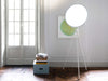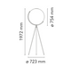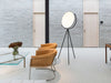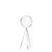 Apparecchio di illuminazione da terra orientabile a luce diretta. Corpo in alluminio verniciato o cromato, con testa tornita in lastra, giunti pressofusi e steli estrusi. Diffusore in PMMA serigrafato. Interruttore ottico posizionato sullo stelo che garantisce la funzione Warm Tone Dimming. Cavo elettrico lunghezza utile 250 cm. Power supply su spina con plug intercambiabili.