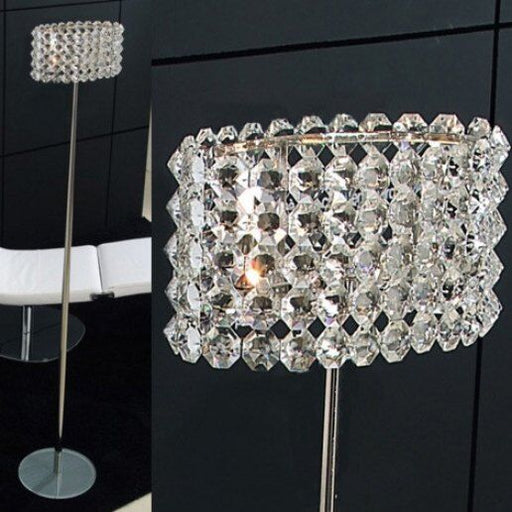 Dimensioni Larghezza: 34 x 17, altezza: 170 cmDescrizione ProdottoLampada a piantana in cristallo trasparente con struttura in metallo nichel lucid...