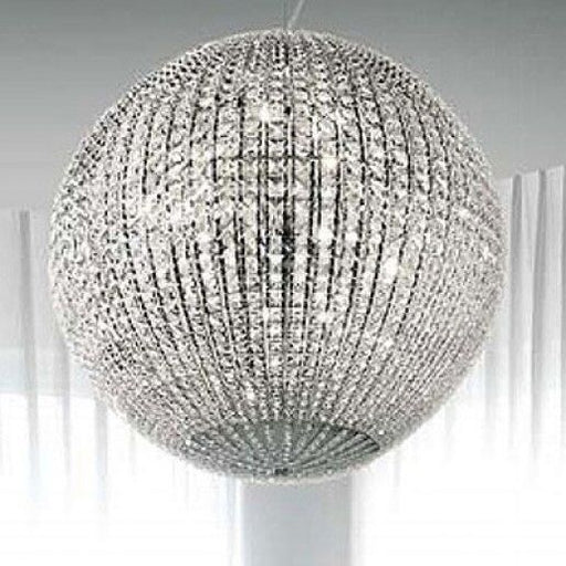 Dimensioni Diametro: 106 cm, altezza struttura: 12 cm, altezza tot: 150 cmDescrizione ProdottoLampadario in cristallo trasparente con struttura in ...