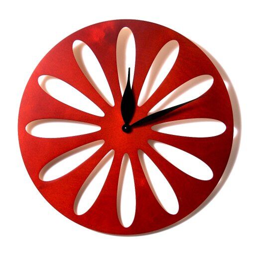 Orologio da parete in betulla naturale o tinta ciliegio, con meccanismo al quarzo. Colori disponibile nei giallo, arancio, e nero.