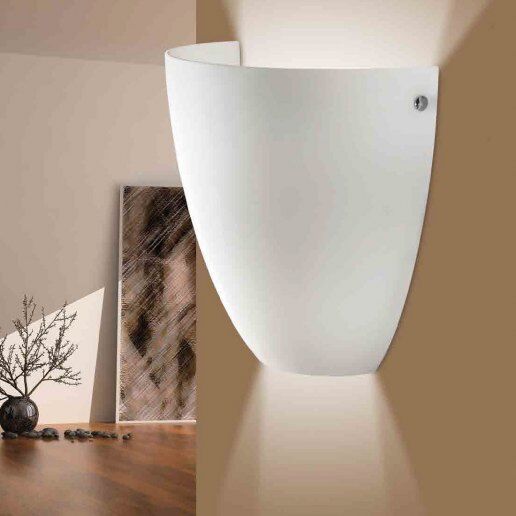 Serie di lampade da parete in vetro soffiato bianco satinato. Due le misure disponibili. Basetta in metallo laccato per il fissaggio aparete.Country of Manufacturer
