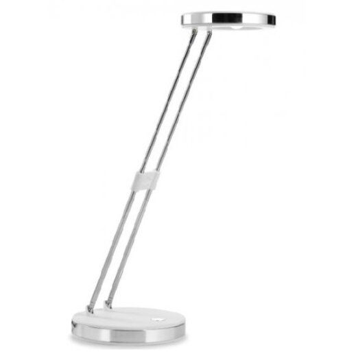 Lampada da tavolo in metallo con aste telescopiche e testa orientabile. Sorgente LED da 3W, interruttore a sfioramento nella base con regolatore del flusso luminoso. Disponibile in tre varianti di colore: bianco, argento e nero.Country of Manufacturer