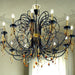 Lampadario, vetro murano colorato, pendenti in cristallo al piombo 30%, finitura oro opaco,argento satinato, cromo. Impermeabilità grado IP 20.