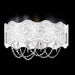 Plafoniera, vetro diffusore bianco latte inciso, pendenti in cristallo 30% al piombo e swarovski strass, finitura bianco, foglia oro o foglia argento. Impermeabilità grado IP 20.