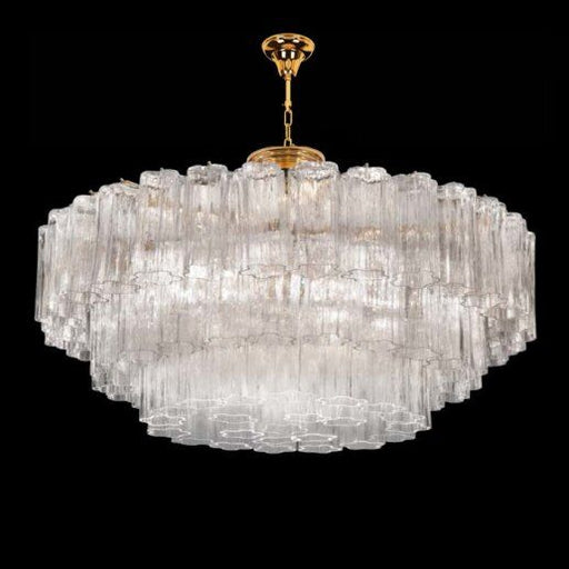Dimensioni Diametro: 80 cm, Altezza: 58-123 cm.Descrizione ProdottoVetro in martellato trasparente e colorato. Finitura disponibili nei cromo e oro...