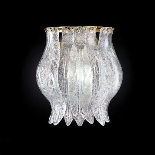 Dimensioni Larghezza: 50 cm, Altezza: 42 cm, Spessore: 13,5 cm.Descrizione ProdottoLampada da parete, vetro cristallo, finitura oro lucido 24 carat...