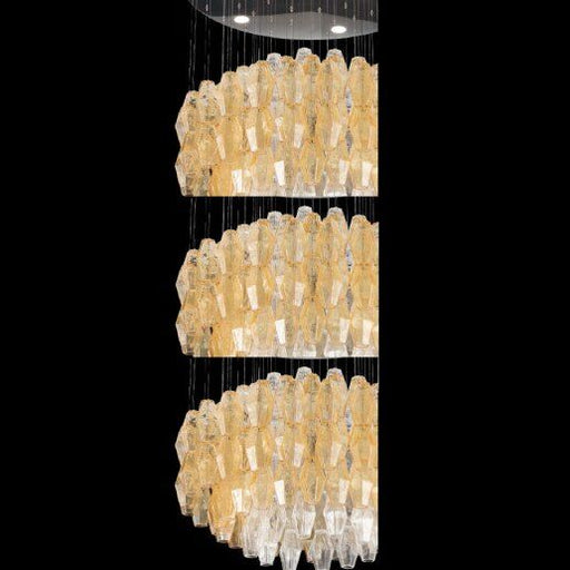 Dimensioni Diametro: 80 cm, Altezza: 160-310 cm.Descrizione ProdottoVetro in martellato trasparente e colorato. Finitura disponibili nei cromo e or...