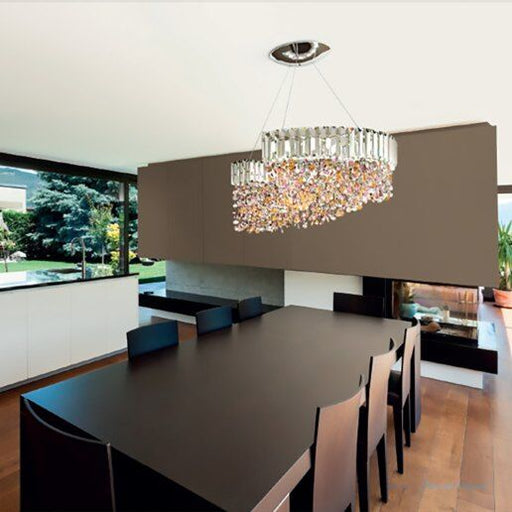 Dimensioni Diametro: 55 cm,Altezza: 30-130 cm.Descrizione ProdottoLampada da sospensione, vetro cristallo, finitura oro 24 carati o cromo. Impermea...