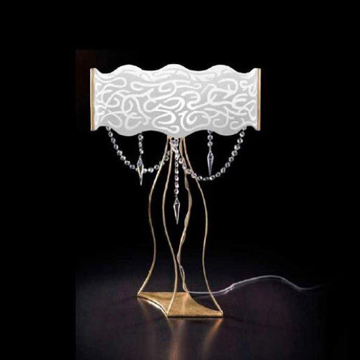 Dimensioni Altezza: 66 cm, larghezza: 45 x 24 cmDescrizione ProdottoLampada da tavolo, vetro diffusore bianco latte inciso, pendenti in cristallo 3...