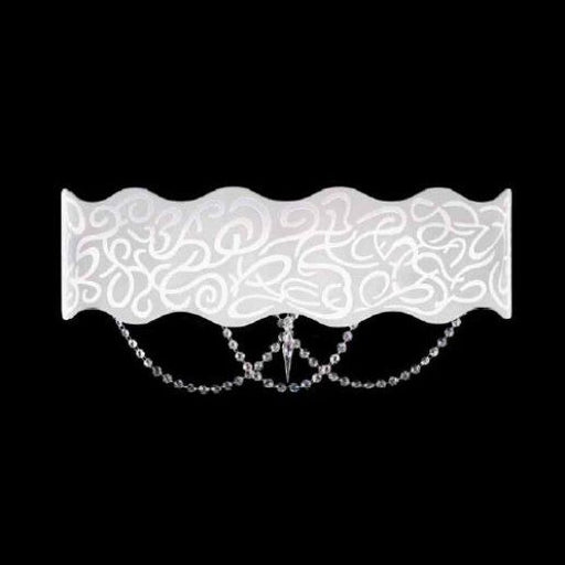 Dimensioni Altezza: 29 cm, Larghezza: 55 cm, Sporgenza: 13 cm.Descrizione ProdottoLampada da parete, vetro diffusore bianco latte inciso, pendenti ...