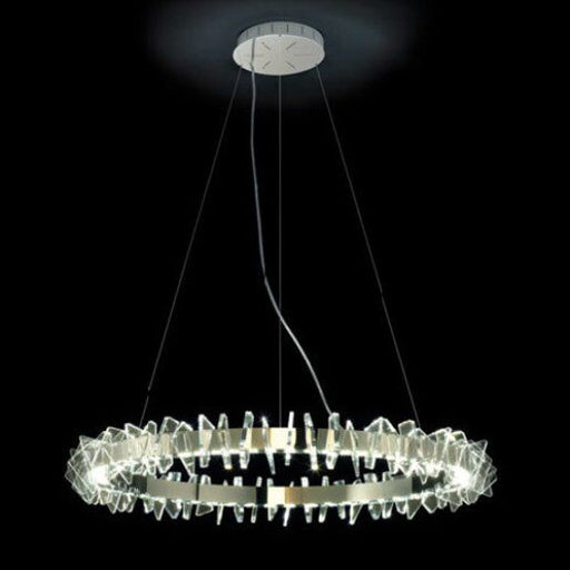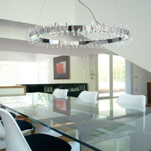 Dimensioni Diametro: 120 cm, Altezza: 40 - 160 cm.Descrizione ProdottoSospensione, vetro metacrilato trasparente , finitura cromo o oro 24 carati. ...