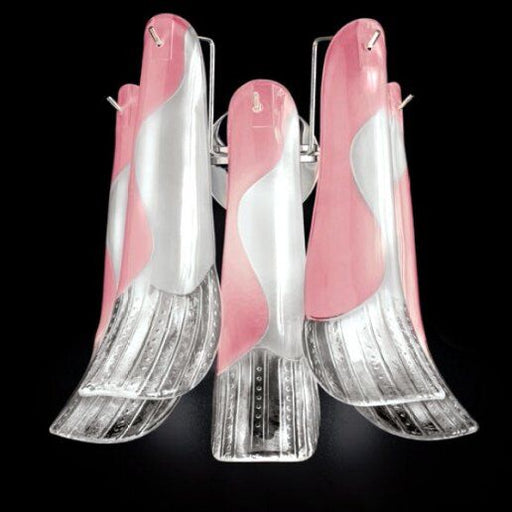Dimensioni Diametro: 45 cm, Altezza: 40 cm.Descrizione ProdottoLampadario, vetro bianco, rosa, ambra, finitura oro lucido 24 carati o cromo. Imperm...