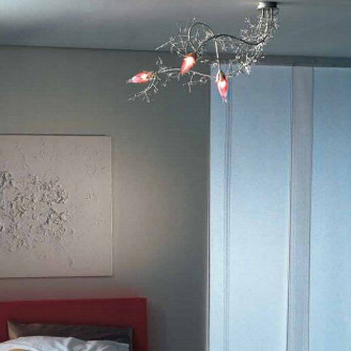 Dimensioni Diametro: 63 cm, Altezza: 17 cm.Descrizione ProdottoPlafoniera, vetro murano trasparente e colorati (rosso, ambra,azzurro e nero), finit...