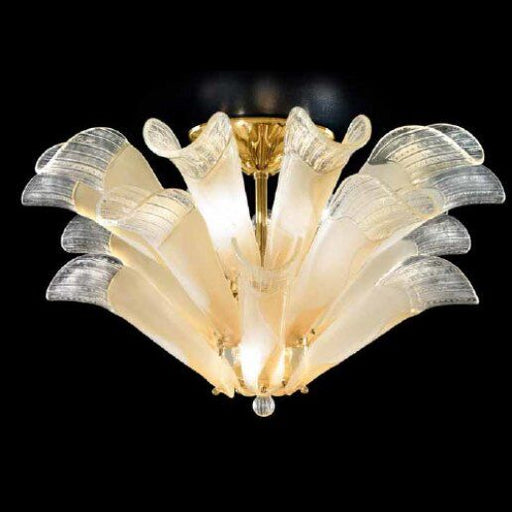 Dimensioni Diametro: 50 cm, Altezza: 45 cm.Descrizione ProdottoPlafoniera, vetro bianco, rosa, ambra, finitura oro lucido 24 carati o cromo. Imperm...
