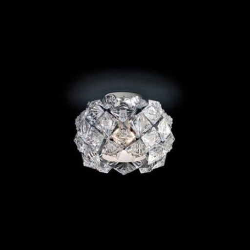 Dimensioni Diametro: 35 cm, Altezza: 19 cm.Descrizione ProdottoPlafoniera, vetro metacrilato trasparente sfacettato, finitura cromo o oro 24 carati...
