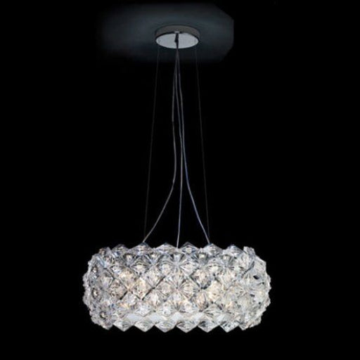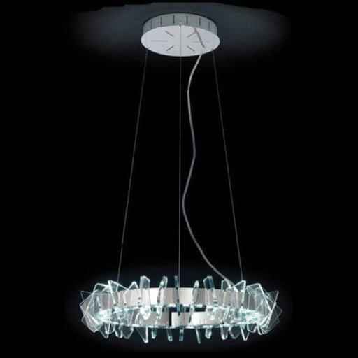Dimensioni Diametro: 64 cm, Altezza: 28 - 170 cm.Descrizione ProdottoSospensione, vetro metacrilato trasparente sfacettato, finitura cromo o oro 24...
