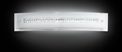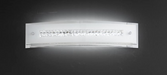 Collezione di lampade realizzate con montatura in in metallo cromo lucido e vetro molato bianco. Il diffusore è arricchito dai preziosi cristalli incastonati nella lastra di vetro.