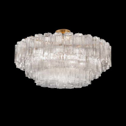 Dimensioni Diametro: 60 cm, Altezza: 18 cm.Descrizione ProdottoPlafoniera, vetro murano trasparente e colorati (rosso, ambra, azzurro o nero), fini...