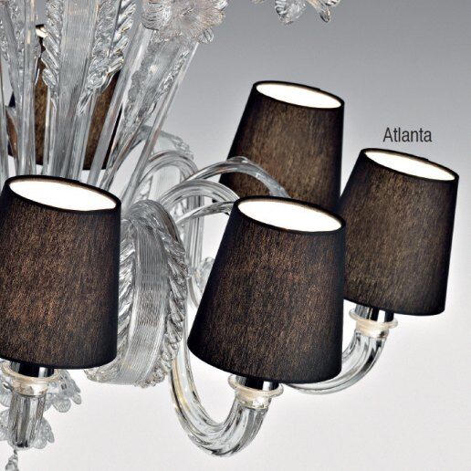 Applique in vetro di murano di trasparente lavorato a mano. Struttura disponibile nei colori grigio chiaro o cromo, colori cristallo, opalino o nero. Paralume avorio o nero. Specificare il colore da voi desiderato al momento dell'ordine.