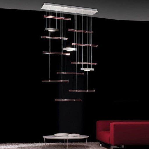 Dimensioni Vedi immagine (misure espresse in cm)Descrizione ProdottoEXPLO 10 lampada a sospensione. Montatura in metallo verniciato bianco e acciai...