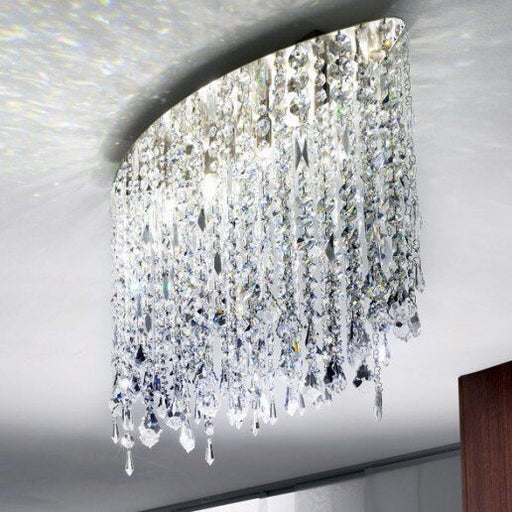Dimensioni Vedi immagine (misure espresse in cm)Descrizione ProdottoMARYLIN 66 Plafoniera da soffitto. Montatura in nickel satinato. Colori: crista...