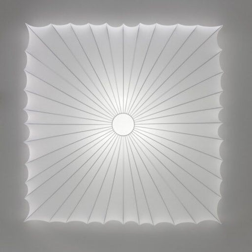 Dimensioni Vedi immagine (misure espresse in cm)Descrizione ProdottoMUSE 120 Q plafoniera da soffitto con struttura metallica bianca e rivestimento...