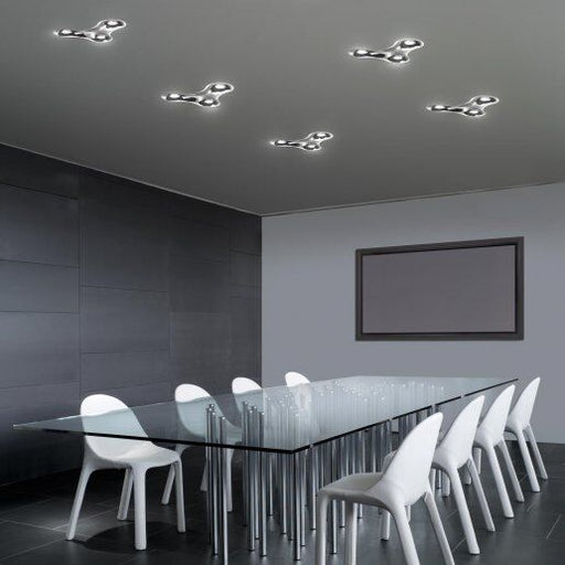 Dimensioni Vedi immagine (misure espresse in cm)Descrizione ProdottoCollezione di plafoniere con tre luci in iniezione ABS bianco disponibile in cr...