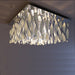 Aura P 30 I plafoniera da soffitto con pendenti in vetro colorato incamiciato cristallo e ritorti a mano. Montatura in acciaio lucidato o foglia oro. Colori vetri: bianco, rosso, nero, arancio, tè e cristallo “rigadin”. Disponibile anche come faretto da incasso o applique da parete.
