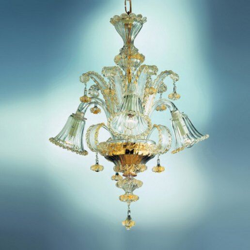 Sospensione in vetro trasparente lavorato a mano. Struttura colore oro. Colori cristallo decorato oro.Country of Manufacturer