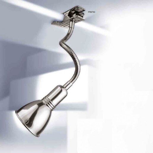 Lampade da parete e soffitto. Pinza in metallo con flessibile. Riflettore orientabile in alluminio. Completa di cavo di alimentazione ed interruttore trasparente. Disponibile nei colori: bianco, nero, arancio e cromo.Country of Manufacturer