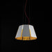 Collezione di lampade a sospensione con struttura portante in MDF e alluminio, disponibili in tre diverse dimensioni. Composizione in alluminio verniciato bianco opaco raggrinzato. Diffusore in metacrilato bianco. La scelta del cavo elettrico può variare dal trasparente in silicone al tessuto rosso o nero.
