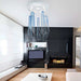 Sospensione, Vetro soffiato trasparente, blu, azzurro e acquamarina. Struttura bianco perlato. Alimentatore on/off incluso.Country of Manufacturer