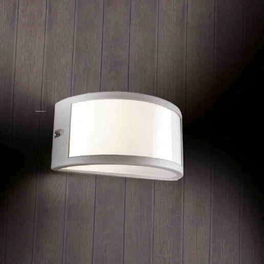 Lampada da parete per esterni in pressofusione di alluminio con schermo in metacrilato satinato. Progettata solo per l'impiego di lampadine fluorescenti elettroniche.Country of Manufacturer