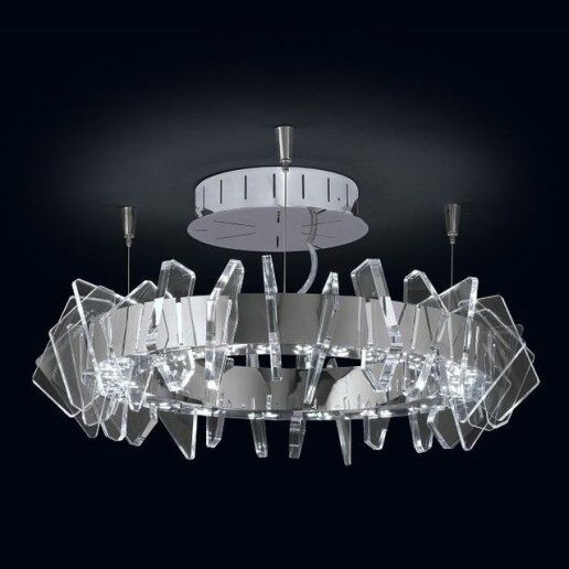 Plafoniera, vetro metacrilato trasparente , finitura cromo o oro 24 carati. Impermeabilità grado IP 20.Country of Manufacturer