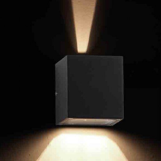 Lampada da parete per esterni in pressofusione di alluminio e vetro di protezione. Emissione luminosa dei 2 gruppi ottici diretta verso alto-basso.Country of Manufacturer