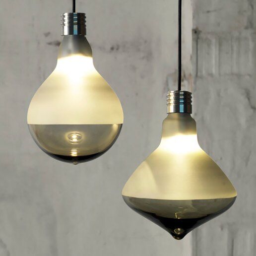Lampada a sospensione a luce diretta in vetro satinato.