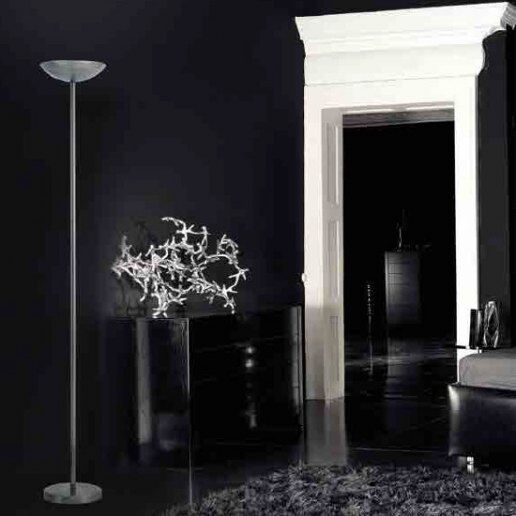 Lampada da terra con struttura in metallo. Diffusore in metallo di forma circolare. Disponibile in 3 colori: nero, grigio, acciaio spazzolato. Cavo di alimentazione trasparente con dimmer.Country of Manufacturer