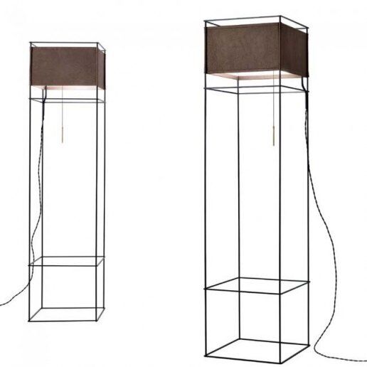 Lampada da terra con diffusore in pelle disponibile nei colori oro, avorio, marrone o sabbia. Montatura in metallo di colore nero o nickel metallizzato.Country of Manufacturer