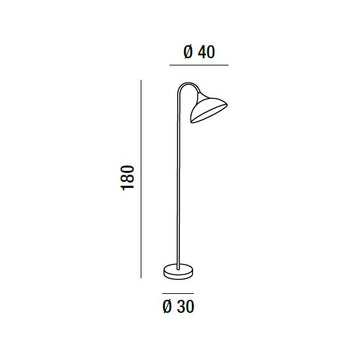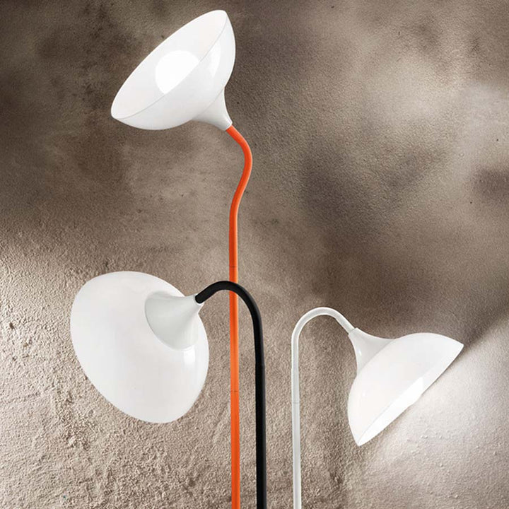 Questa lampada da terra orientabile dalle linee moderne é realizzata in metallo e gomma. Interruttore a pedale. Disponibile nei colori bianco e nero.