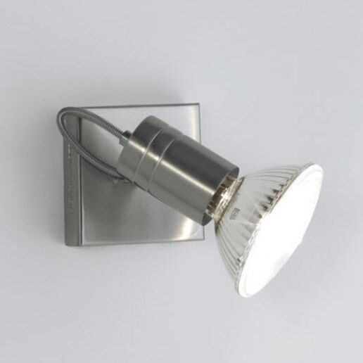 Montatura nichel galvanico spazzolato o bianco. Lampadina esclusa attacco E27 per PAR 30.Possibilità montaggio su specchio con accessorio clip10nk.